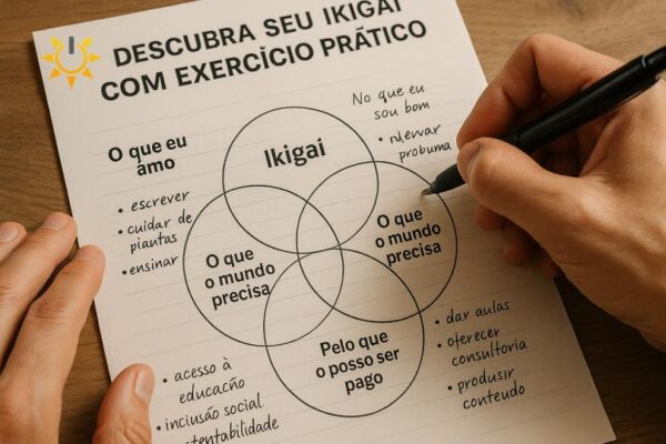 Muitas pessoas ouvem falar sobre o conceito de Ikigai, acham bonito, inspirador, mas travam na hora de aplicar no dia a dia. Afinal, como colocar em prática algo tão subjetivo? A boa notícia é que existe uma forma simples e poderosa de começar essa jornada: com um exercício prático de autoconhecimento. Neste artigo, você vai…